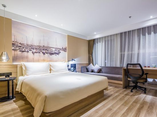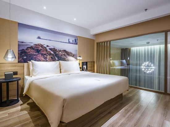 酒店简介 青岛金沙滩亚朵酒店位于青岛黄岛区(西海岸新区)漳江路182号,南邻金沙滩、啤酒城;西靠唐岛湾及唐岛湾公园;北邻青岛理工大学,距离石油大学仅3.5公里;地理位置优越。靠近西区主干道漓江东路(滨海大道),前往青岛市区仅需20分钟左右车程。 酒店拥有客房127间,房间暗中有序、色彩搭配等在空间里都感度保持一致。这里所有床型都是1.8米,采用丝涟床垫和普兰特系列优质床品,全套研究所草本系列沐浴产品,在以人为本的基础上,倡导一场新生活美学。愿客心洗流水,愿归去又来兮。 酒店配备24小时流动图书管,摆放的整整齐齐的书,满满的书香。卷珠帘,人独立,静思,凝望。抽几卷书画,品茗休憩,将浮云吹作雪,让世味煮成茶。 配备丰富的中西结合自助早餐,更有当地特色食材制作出的菜式,为您开启一天的美好心情;24小时健身房,酣畅淋漓后,身体也变得柔软起来;在这里,出行洗衣已不再成为您的负担,洗衣房内漂洗、烘干、熨烫、缝补一步到位。酒店另配备大小会议室,为商务出行提供便利青岛金沙滩亚朵酒店位于青岛黄岛区(西海岸新区)漳江路182号,南邻金沙滩、啤酒城;西靠唐岛湾及唐岛湾公园;北邻青岛理工大学,距离石油大学仅3.5公里;地理位置优越。靠近西区主干道漓江东路(滨海大道),前往青岛市区仅需20分钟左右车程。 酒店拥有客房127间,房间暗中有序、色彩搭配等在空间里都感度保持一致。这里所有床型都是1.8米,采用丝涟床垫和普兰特系列优质床品,全套研究所草本系列沐浴产品,在以人为本的基础上,倡导一场新生活美学。愿客心洗流水,愿归去又来兮。 酒店配备24小时流动图书管,摆放的整整齐齐的书,满满的书香。卷珠帘,人独立,静思,凝望。抽几卷书画,品茗休憩,将浮云吹作雪,让世味煮成茶。 配备丰富的中西结合自助早餐,更有当地特色食材制作出的菜式,为您开启一天的美好心情;24小时健身房,酣畅淋漓后,身体也变得柔软起来;在这里,出行洗衣已不再成为您的负担,洗衣房内漂洗、烘干、熨烫、缝补一步到位。酒店另配备大小会议室,为商务出行提供便利