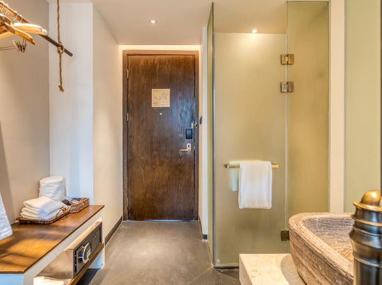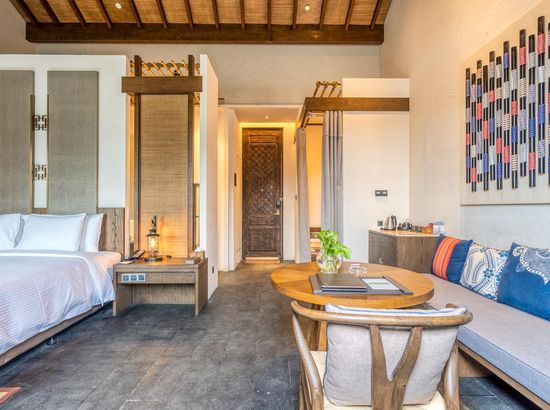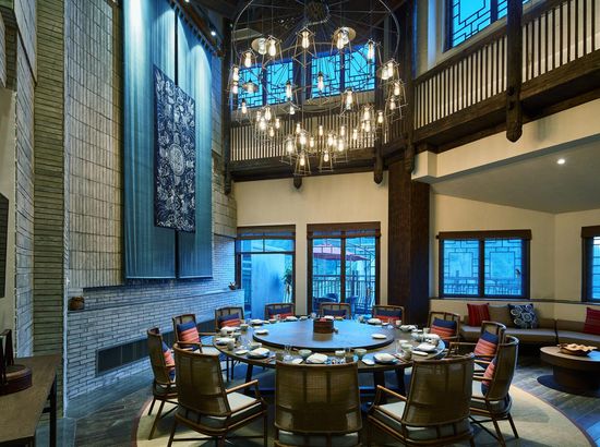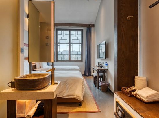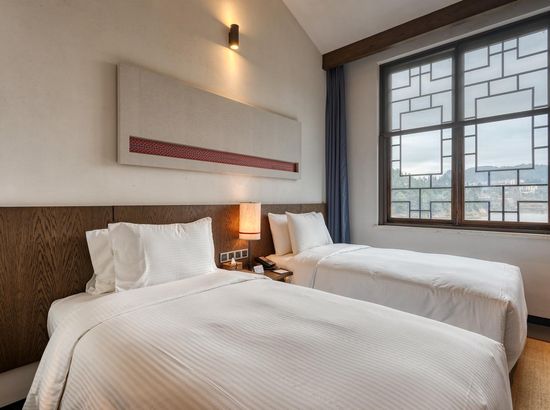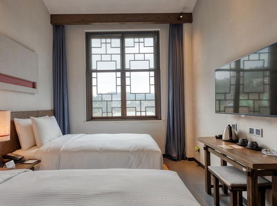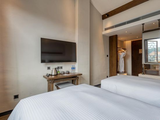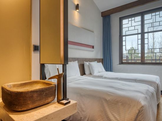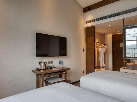 酒店简介 丹寨万达美华酒店,位于黔东南苗族侗族自治州的丹寨万达旅游小镇内(锦鸡广场旁),距离黔东南州首府凯里约50公里 (关联凯里南),黔南州首府都约60公里(关联都匀东)。2017年7月3日,酒店和丹寨万达小镇同步开业,酒店设计风格凝练了非物质文化遗产精华,包括当地的蜡染艺术、鸟笼文化、古法造纸、以及传承百年的锦鸡舞蹈元素,客房精致小巧的中式简约设计风格,把“扶贫”建设和科学设计巧妙结合,整体构思以“依山傍水观鱼舞,沿岸穿林听树涛”为设计理念,是一家将简约度假风格与苗寨村落形式相结合的设计师酒店。2018年和2019年酒店先后获得和入围德国IF Design Award“建筑与室内设计”、第十四届美国HD Awards“客房”和2019年英国SBID “酒店客房及套房设计Hotel Bedroom&Suites Design ”等世界设计大奖。丹寨万达美华酒店,位于黔东南苗族侗族自治州的丹寨万达旅游小镇内(锦鸡广场旁),距离黔东南州首府凯里约50公里 (关联凯里南),黔南州首府都约60公里(关联都匀东)。2017年7月3日,酒店和丹寨万达小镇同步开业,酒店设计风格凝练了非物质文化遗产精华,包括当地的蜡染艺术、鸟笼文化、古法造纸、以及传承百年的锦鸡舞蹈元素,客房精致小巧的中式简约设计风格,把“扶贫”建设和科学设计巧妙结合,整体构思以“依山傍水观鱼舞,沿岸穿林听树涛”为设计理念,是一家将简约度假风格与苗寨村落形式相结合的设计师酒店。2018年和2019年酒店先后获得和入围德国IF Design Award“建筑与室内设计”、第十四届美国HD Awards“客房”和2019年英国SBID “酒店客房及套房设计Hotel Bedroom&Suites Design ”等世界设计大奖。