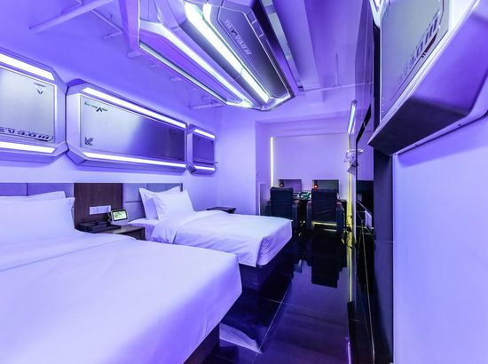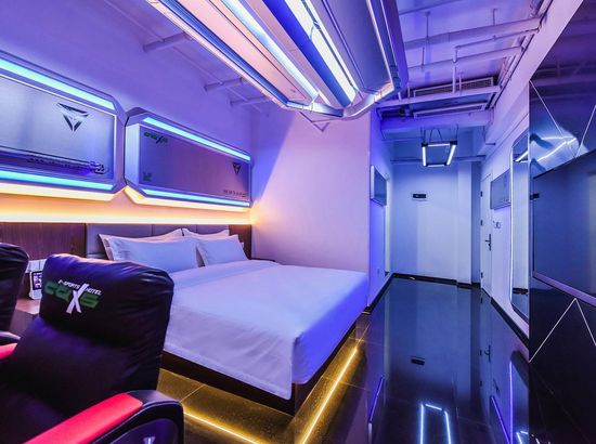 酒店简介 公寓位于重庆一座网红城市,新颖时尚的设计风格恰到好处的阐释了专业的电竞酒店。两人到六人间房型均可满足电竞顾客不同层次的需求,专业电竞配置、优质服务、高端的房型、多元化酒店配套,成伟梦想电竞社交大佬。重庆帅气来袭!有组团打电竞熬夜通宵崩溃经历吗?走过DOTA、压过LOL、嗨过绝地求生、寝室网络不好?网吧不好睡觉?家里电脑太少?来迅鼠·职业电竞酒店可玩、可吃、可住!在这里,不仅有专业电竞装备所带来的畅快体验,还有舒适宽敞私密空间,高端洗漱用品,惊喜不断,狂拽酷炫炸天!您是否还在纠结游戏还是女朋友?来这里让您鱼和熊掌兼得,体验极速、激情无限、等您来战!过夜生活住本公寓。公寓位于重庆一座网红城市,新颖时尚的设计风格恰到好处的阐释了专业的电竞酒店。两人到六人间房型均可满足电竞顾客不同层次的需求,专业电竞配置、优质服务、高端的房型、多元化酒店配套,成伟梦想电竞社交大佬。重庆帅气来袭!有组团打电竞熬夜通宵崩溃经历吗?走过DOTA、压过LOL、嗨过绝地求生、寝室网络不好?网吧不好睡觉?家里电脑太少?来迅鼠·职业电竞酒店可玩、可吃、可住!在这里,不仅有专业电竞装备所带来的畅快体验,还有舒适宽敞私密空间,高端洗漱用品,惊喜不断,狂拽酷炫炸天!您是否还在纠结游戏还是女朋友?来这里让您鱼和熊掌兼得,体验极速、激情无限、等您来战!过夜生活住本公寓。