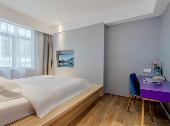 酒店简介 东莞栖遇旅行主题酒店位于长盛广场、大朗体育馆、大润发广场200米处,离东莞松山湖风景区、寮步香市公园、大朗地铁口2KM范围,周围生活配套齐全,周边有大朗美食街、红馆清吧、湘妈掌厨、点得好点心,外出购物、就餐方便。东莞栖遇旅行主题酒店以祖国每一个省地图为背景,背景下有一个二维码,每一座城市的旅游攻略,吃喝玩乐在一个二维码中一“扫”而现,你可以住遍每一间主题房,领略每一座城市的风景和美食!每间房放置该省的人文历史书,可以足不出户的了解一座城;大堂书吧有各地旅游类书籍供租客阅读,陈列各地旅行随拍美景;光阴镌刻出流水落花,总需一处风景,用来安放灵魂,总有一处画面,令人......一场不“栖”而遇的邂逅,就从 “栖遇”旅行开始……东莞栖遇旅行主题酒店位于长盛广场、大朗体育馆、大润发广场200米处,离东莞松山湖风景区、寮步香市公园、大朗地铁口2KM范围,周围生活配套齐全,周边有大朗美食街、红馆清吧、湘妈掌厨、点得好点心,外出购物、就餐方便。东莞栖遇旅行主题酒店以祖国每一个省地图为背景,背景下有一个二维码,每一座城市的旅游攻略,吃喝玩乐在一个二维码中一“扫”而现,你可以住遍每一间主题房,领略每一座城市的风景和美食!每间房放置该省的人文历史书,可以足不出户的了解一座城;大堂书吧有各地旅游类书籍供租客阅读,陈列各地旅行随拍美景;光阴镌刻出流水落花,总需一处风景,用来安放灵魂,总有一处画面,令人......一场不“栖”而遇的邂逅,就从 “栖遇”旅行开始……