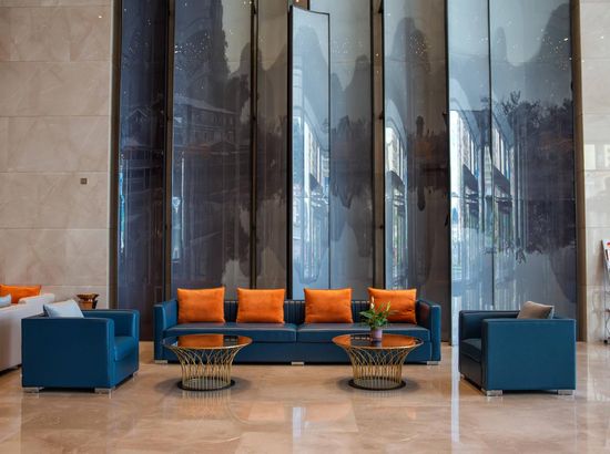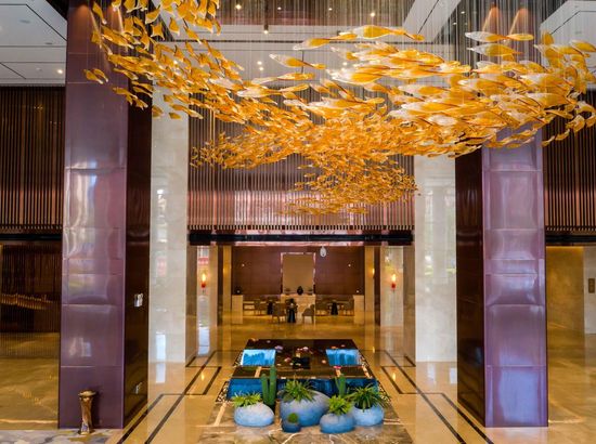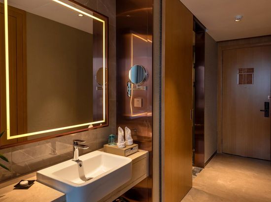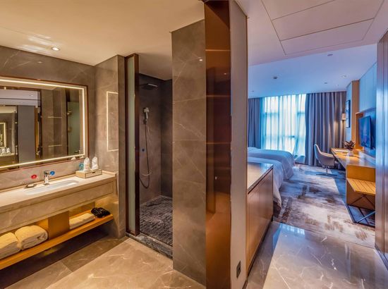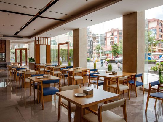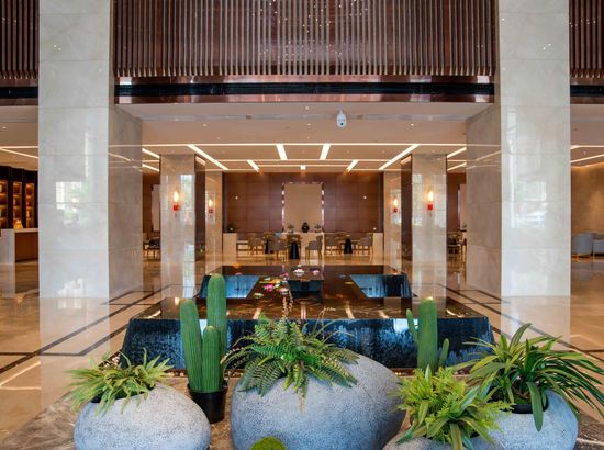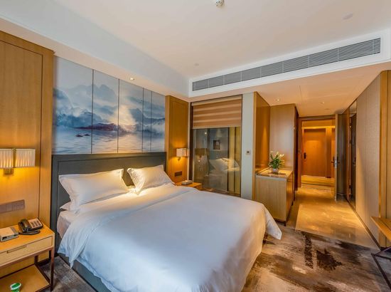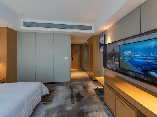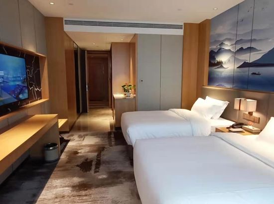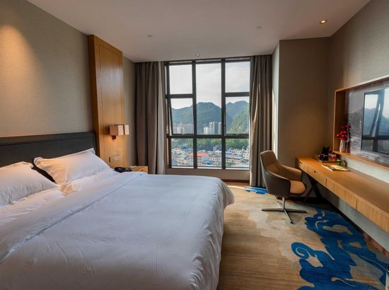 酒店简介 酒店位于广西崇左市大新县城东区,高端住宅小区、综合商业街、财富广场四周环绕,交通便利,地理位置优越。酒店按照豪华舒适标准设计装修,建筑风格以时尚简约为主,是一家集住宿、宴会、会议、娱乐、休闲为一体综合性酒店。酒店配有大型停车场;酒店主楼8-22楼为客房区,拥有各类豪华客房,房间风格精致典雅、温馨舒适。 酒店1楼设自助早餐厅、行李房、贵重物品寄存室、商务中心等,2楼配有设计独特的3个大小会议室、健身房,3个宴席包厢和酒吧;3楼配有大型豪华无柱宴会厅及8个宴席包厢,可同时容纳60桌宴席;4楼为KTV,5楼为茶餐厅。 酒店配套功能齐全,配套完善,是商务接待的理想场所。酒店位于广西崇左市大新县城东区,高端住宅小区、综合商业街、财富广场四周环绕,交通便利,地理位置优越。酒店按照豪华舒适标准设计装修,建筑风格以时尚简约为主,是一家集住宿、宴会、会议、娱乐、休闲为一体综合性酒店。酒店配有大型停车场;酒店主楼8-22楼为客房区,拥有各类豪华客房,房间风格精致典雅、温馨舒适。 酒店1楼设自助早餐厅、行李房、贵重物品寄存室、商务中心等,2楼配有设计独特的3个大小会议室、健身房,3个宴席包厢和酒吧;3楼配有大型豪华无柱宴会厅及8个宴席包厢,可同时容纳60桌宴席;4楼为KTV,5楼为茶餐厅。 酒店配套功能齐全,配套完善,是商务接待的理想场所。