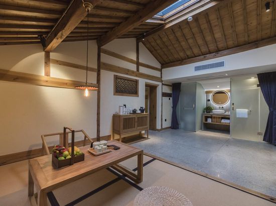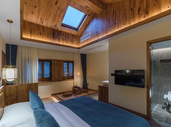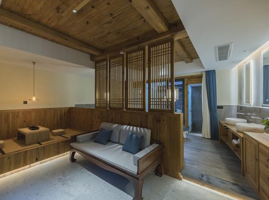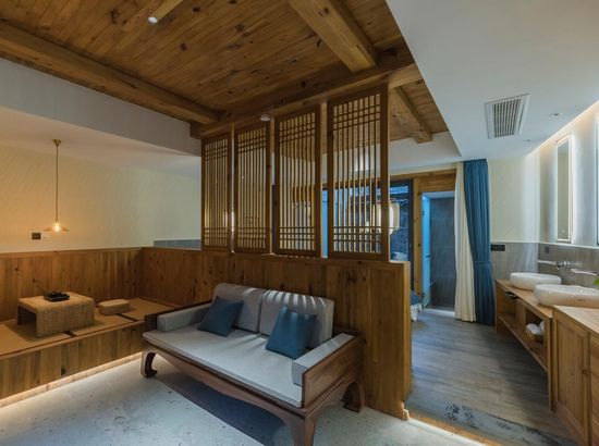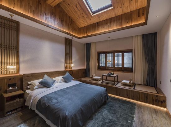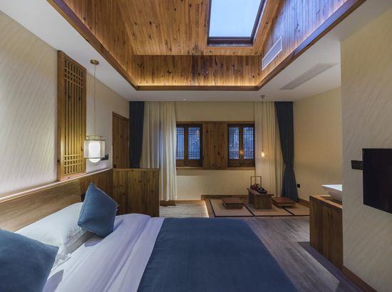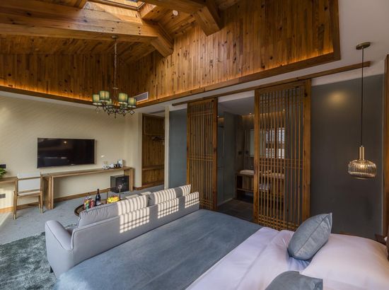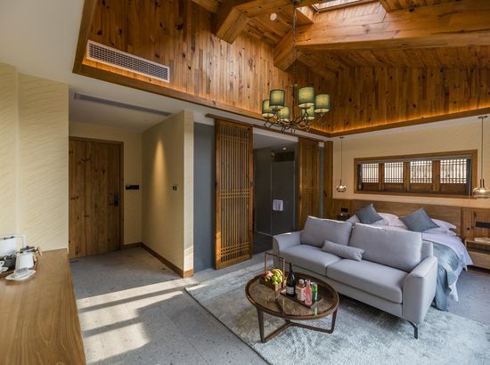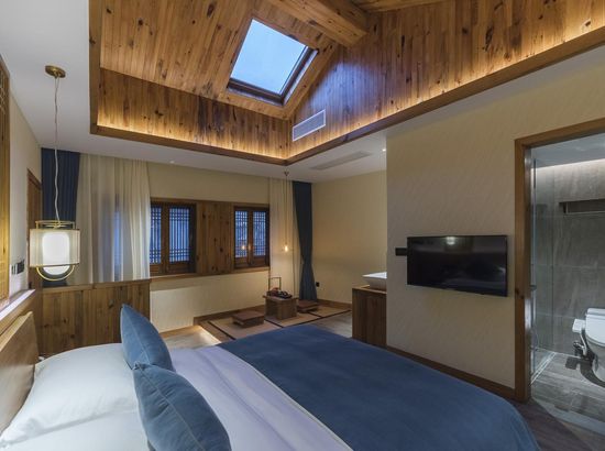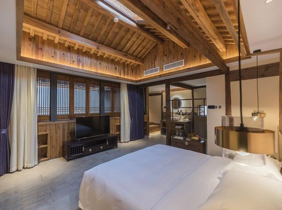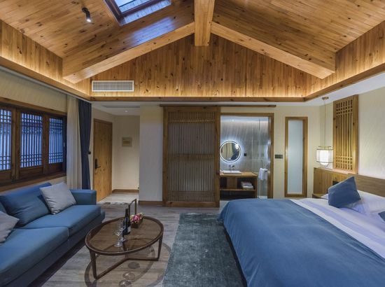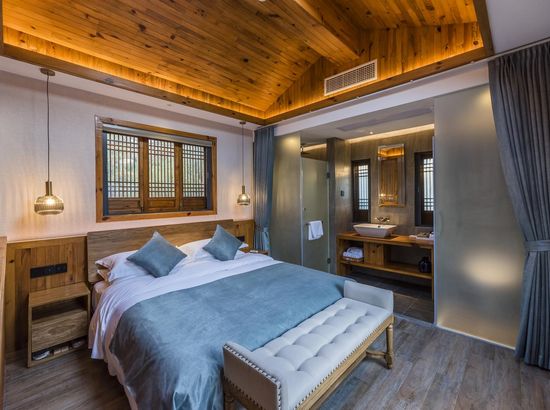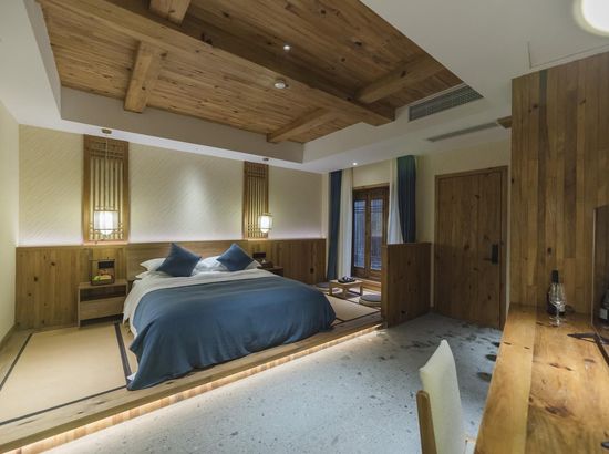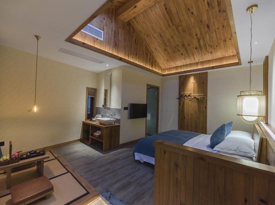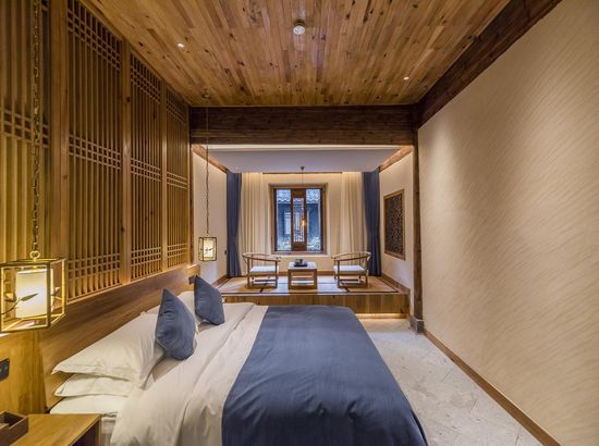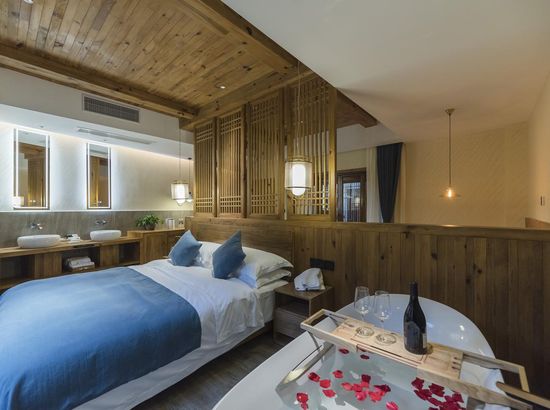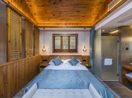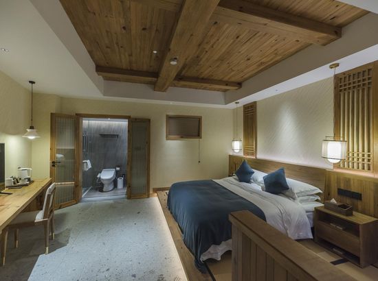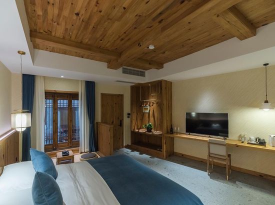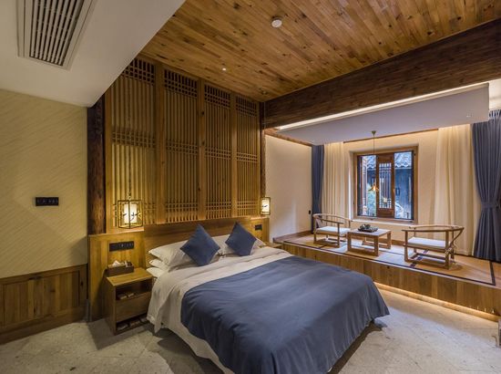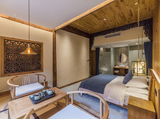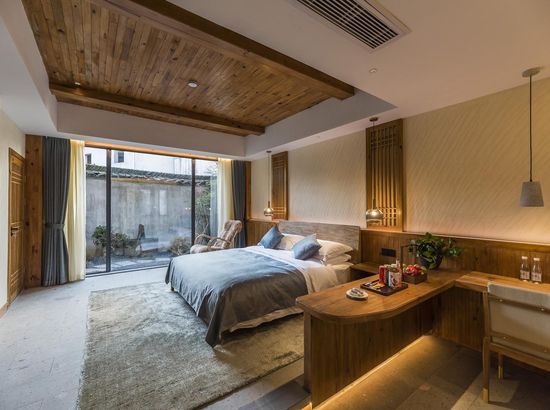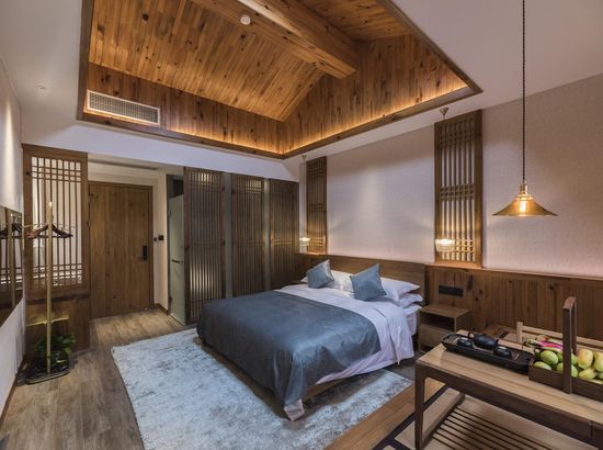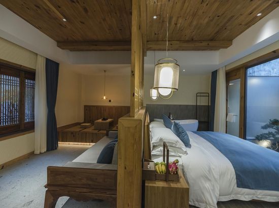 酒店简介 “青砖小瓦马头墙,小桥回廊绣阁藏”。坐落于古徽州六县之一黟县宏村景区附近的黟县山居小隐·何泽堂文化酒店,她不仅保留了古徽派典型建筑风格,同时又结合现代生活,打造成了具有独特魅力的乡瘾民宿。住客们走走停停,目光所及,点滴之处都能感受到她的婉约和风韵。“山居小隐·何泽堂”的主人有着诗和远方的情怀,他回归初心,打造了梦境般的乡居,想与人分享何泽堂的故事。宿中的“忘归小院”、“小隐院子”都有着民宿主人独特的用意。何氏本不姓何,是六国韩王之后,由于秦灭六国之后,韩姓为逃避而改韩为何,成为今天中国十大姓氏之一。而“何泽堂”正是为了缅怀先祖的恩泽而用名。小隐与忘归,充分体现了主人对乡野恬淡生活的期盼与美好生活的向往。这家集古朴与现代相结合的民宿,致力为每一位住客提供最优质的服务。美国丝涟的床垫,铺上康乃馨的床上用品;日本TOTO的卫浴点缀品牌的洗护套装,约克中央空调与地暖更加保障了房间的舒适度……还有能满足三十人左右的会议室、书吧、茶舍,能在茶园里采茶、果园里摘果、菜园里摘菜,还可以定制合适自己口味的私房菜。午后,还可以在垂钓园垂钓,烧烤区自助烧烤、山地自行车越野等野趣生活。在这里,不论您是商务出行、家庭亲子游,还是蜜友聚会,都能让您不虚此行,留下时光里难忘的记忆!“青砖小瓦马头墙,小桥回廊绣阁藏”。坐落于古徽州六县之一黟县宏村景区附近的黟县山居小隐·何泽堂文化酒店,她不仅保留了古徽派典型建筑风格,同时又结合现代生活,打造成了具有独特魅力的乡瘾民宿。住客们走走停停,目光所及,点滴之处都能感受到她的婉约和风韵。“山居小隐·何泽堂”的主人有着诗和远方的情怀,他回归初心,打造了梦境般的乡居,想与人分享何泽堂的故事。宿中的“忘归小院”、“小隐院子”都有着民宿主人独特的用意。何氏本不姓何,是六国韩王之后,由于秦灭六国之后,韩姓为逃避而改韩为何,成为今天中国十大姓氏之一。而“何泽堂”正是为了缅怀先祖的恩泽而用名。小隐与忘归,充分体现了主人对乡野恬淡生活的期盼与美好生活的向往。这家集古朴与现代相结合的民宿,致力为每一位住客提供最优质的服务。美国丝涟的床垫,铺上康乃馨的床上用品;日本TOTO的卫浴点缀品牌的洗护套装,约克中央空调与地暖更加保障了房间的舒适度……还有能满足三十人左右的会议室、书吧、茶舍,能在茶园里采茶、果园里摘果、菜园里摘菜,还可以定制合适自己口味的私房菜。午后,还可以在垂钓园垂钓,烧烤区自助烧烤、山地自行车越野等野趣生活。在这里,不论您是商务出行、家庭亲子游,还是蜜友聚会,都能让您不虚此行,留下时光里难忘的记忆!